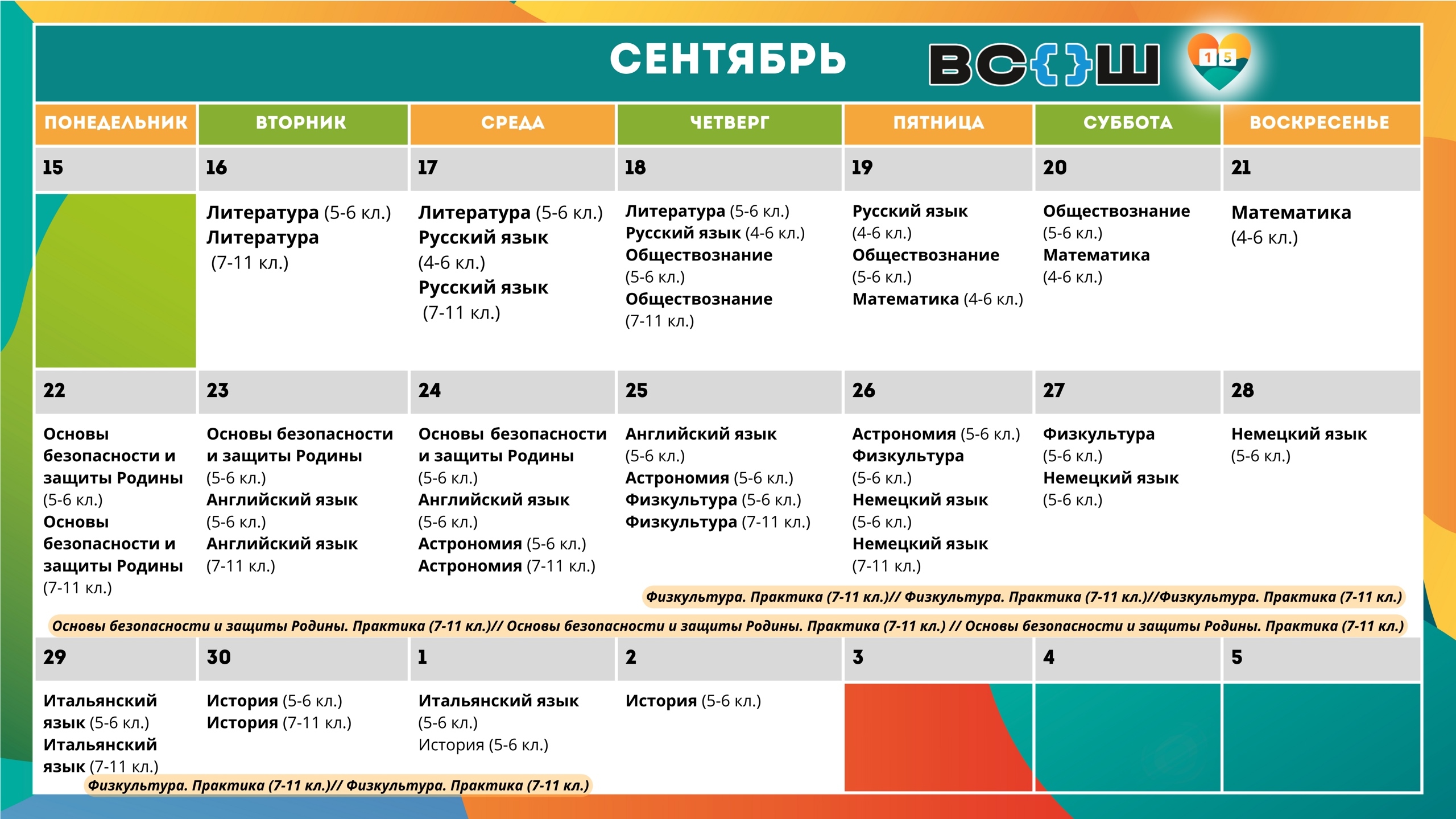 Для удобства мы подготовили для вас график проведения школьного этапа на сентябрь.